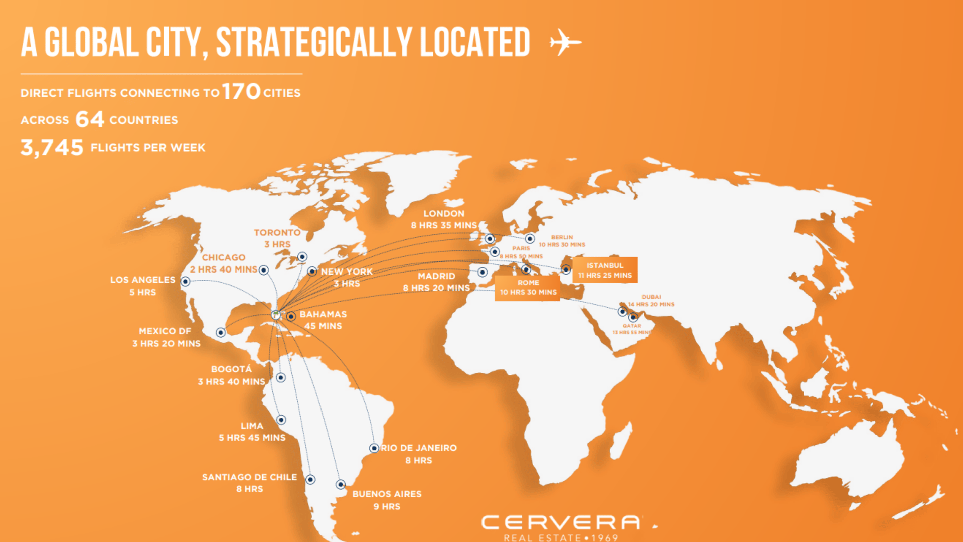 Miami has established itself as one of the world’s most connected cities. According to Miami Realtors, the city offers direct flights to more than 170 destinations across 64 countries, with nearly 3,800 flights per week, underscoring its role as a global gateway. This geographic advantage, positioned at the crossroads of North and South America, makes Miami a natural hub for business, tourism, and above all real estate investment.